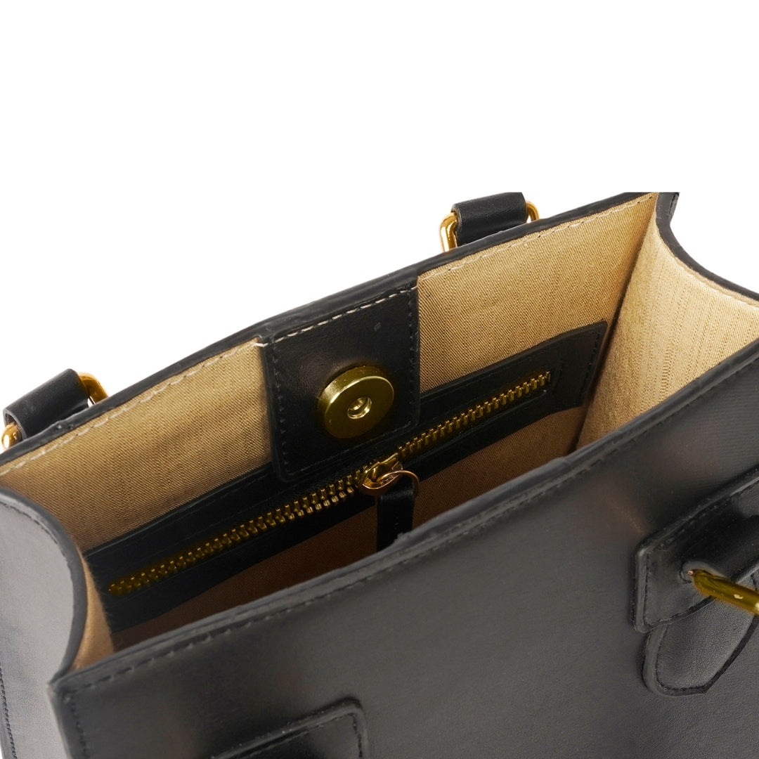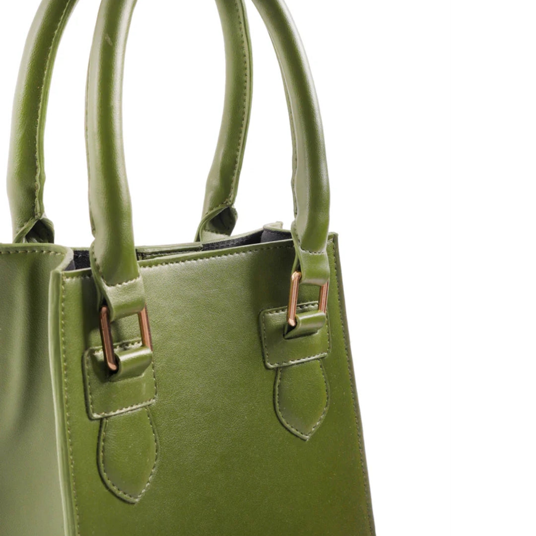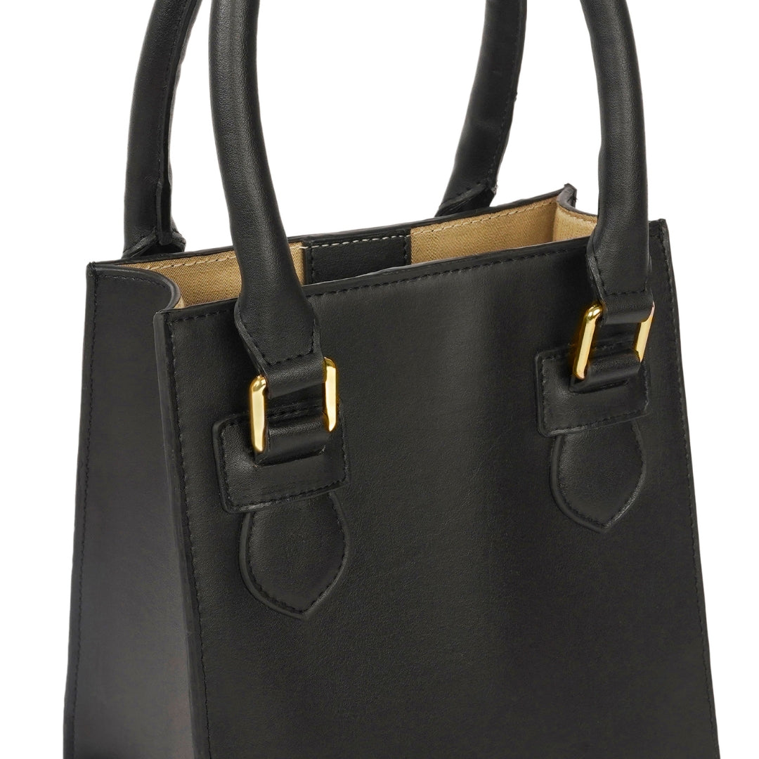 A structured handheld bag with a magnetic snap button closure for effortless access. Made from plant-based material and available in various materials, it’s designed for polished days and intentional carrying.